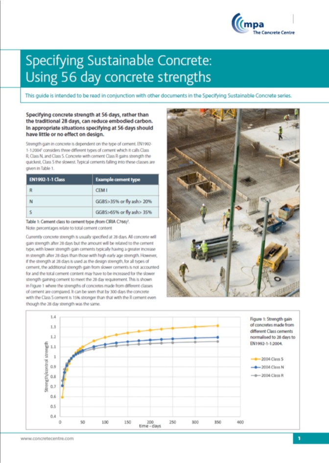 - Specifying Sustainable Concrete: Using 56 day concrete strengths has recently been updated to reflect the latest guidance in BS 8500:2023 and the second generation of Eurocode 2. The revision is available here.
