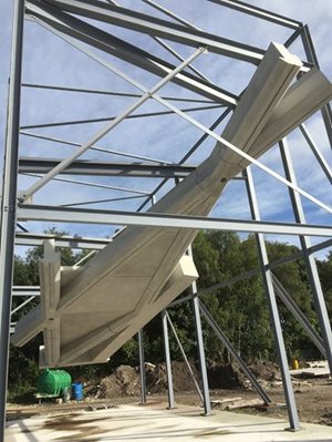 A number of potential solutions were examined, as Duarte Seixas, project manager with BFK (the Bam, Ferrovial, Kier joint venture that built the station) explains: “We looked at making this ceiling from in-situ concrete, but it would have been very hard to achieve the finish we wanted on an incline. It would also have been difficult to crane material and reinforcement through a heavy steel structure above. We looked at making just the beams from in-situ and putting precast panels above, but dismissed this for the same reason, so in the end we agreed that the whole ceiling should be precast.”