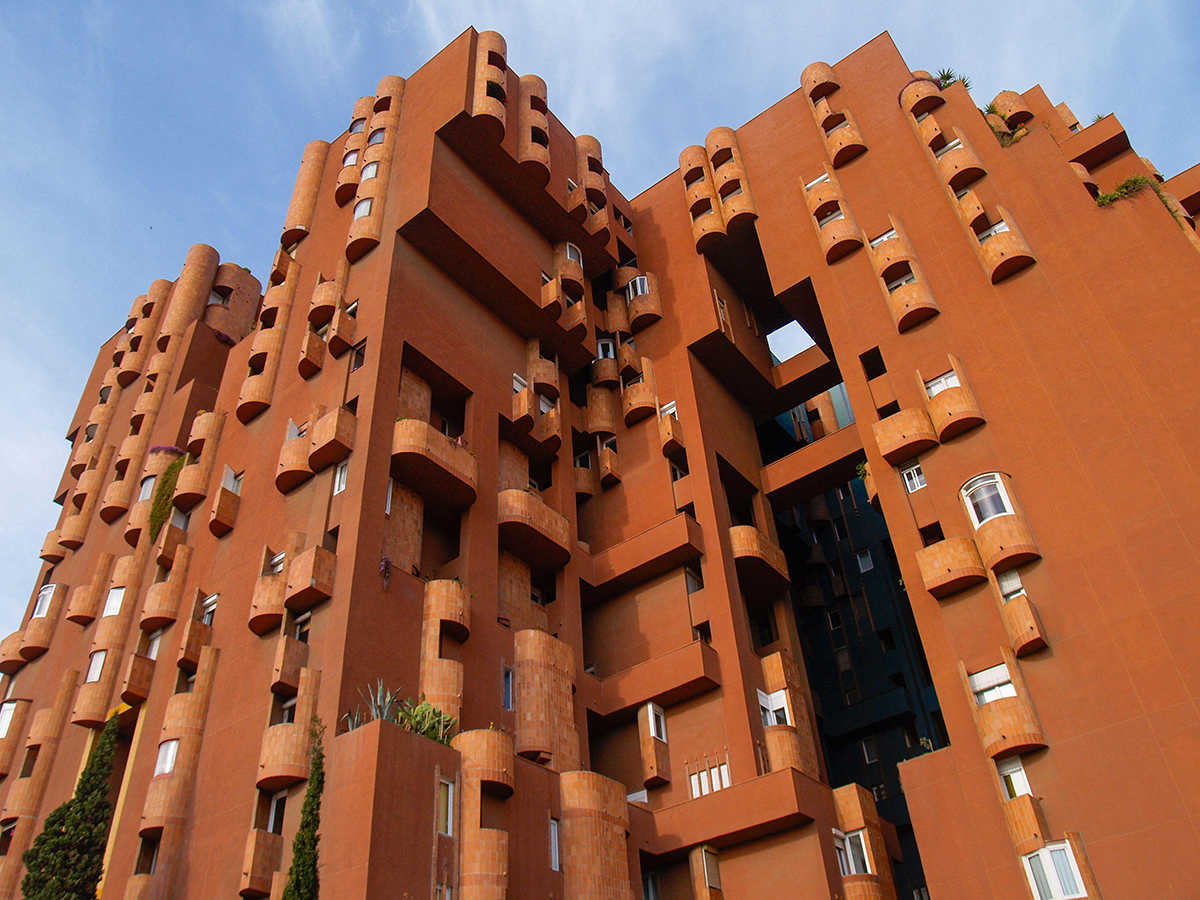 Ricardo Bofill’s Walden 7 outside Barcelona is a very different type of urban landmark. This is architecture that comes out of nowhere, like an alien ship, and I love it. It’s funny how the city has grown around it – there’s a McDonald’s, a school, a car dealership, and then this big red housing block sitting in the middle of it all. It reminds me of an MC Escher painting. You look at one door and you think, where does that lead? How does it connect with those balconies? It’s organised around different configurations of 30m2 units, and I find that modular way of thinking fascinating.