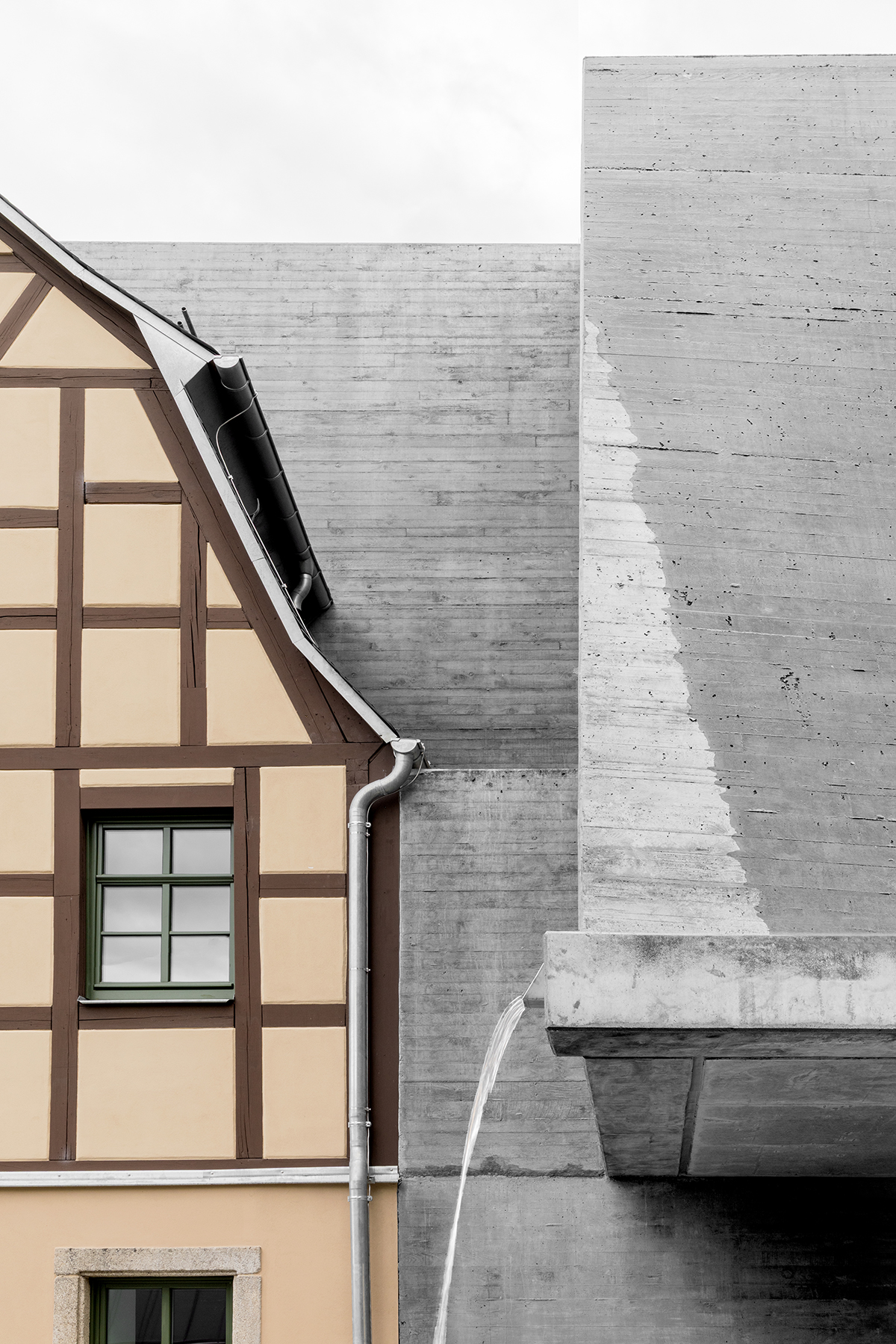 In an effort to reverse the town’s fortunes, Adorf recently opened a museum celebrating this cultural heritage. But the shell that has caught the most attention is the building itself: a carapace of boardmarked concrete wedged between two half-timbered buildings on a formerly vacant site in front of the medieval city wall.