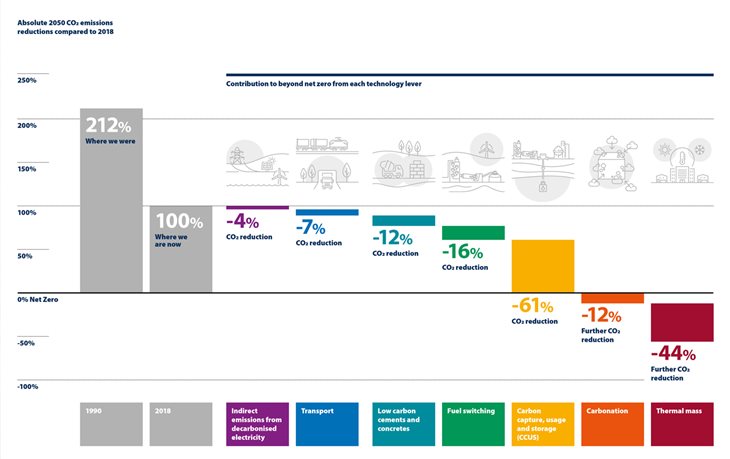 The ‘Roadmap to Beyond Net Zero’ calculates the potential of each technology and the carbon savings which can be achieved. CCUS technology is vital to delivering net zero manufacturing and according to the roadmap will deliver 61 per cent of the required carbon savings. A net negative industry by 2050 will be achieved by using the natural, in-use properties of concrete which include its ability to absorb carbon dioxide during use, and the benefit of using the thermal properties of concrete in buildings and structures to reduce operational emissions.