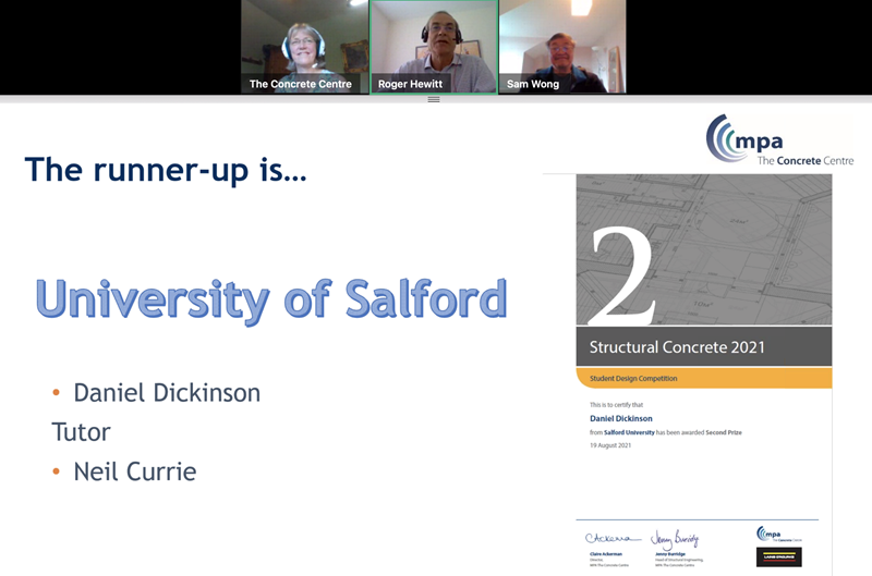 This year, The Concrete Centre held a virtual prize giving awards ceremony via webinar, which took place on Thursday 19 August 2021, where the winners were announced to all delegates. The online event celebrated the winner’s highlights and achievements along with their fellow entrants and the judges.