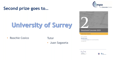 The brief for the next competition, Structural Concrete 2026 was also launched at the event - to design a luxury residential building forming part of an extensive redevelopment of a former industrial site close to the centre of a large UK town. More information can be found at www.concretecentre.com/competition