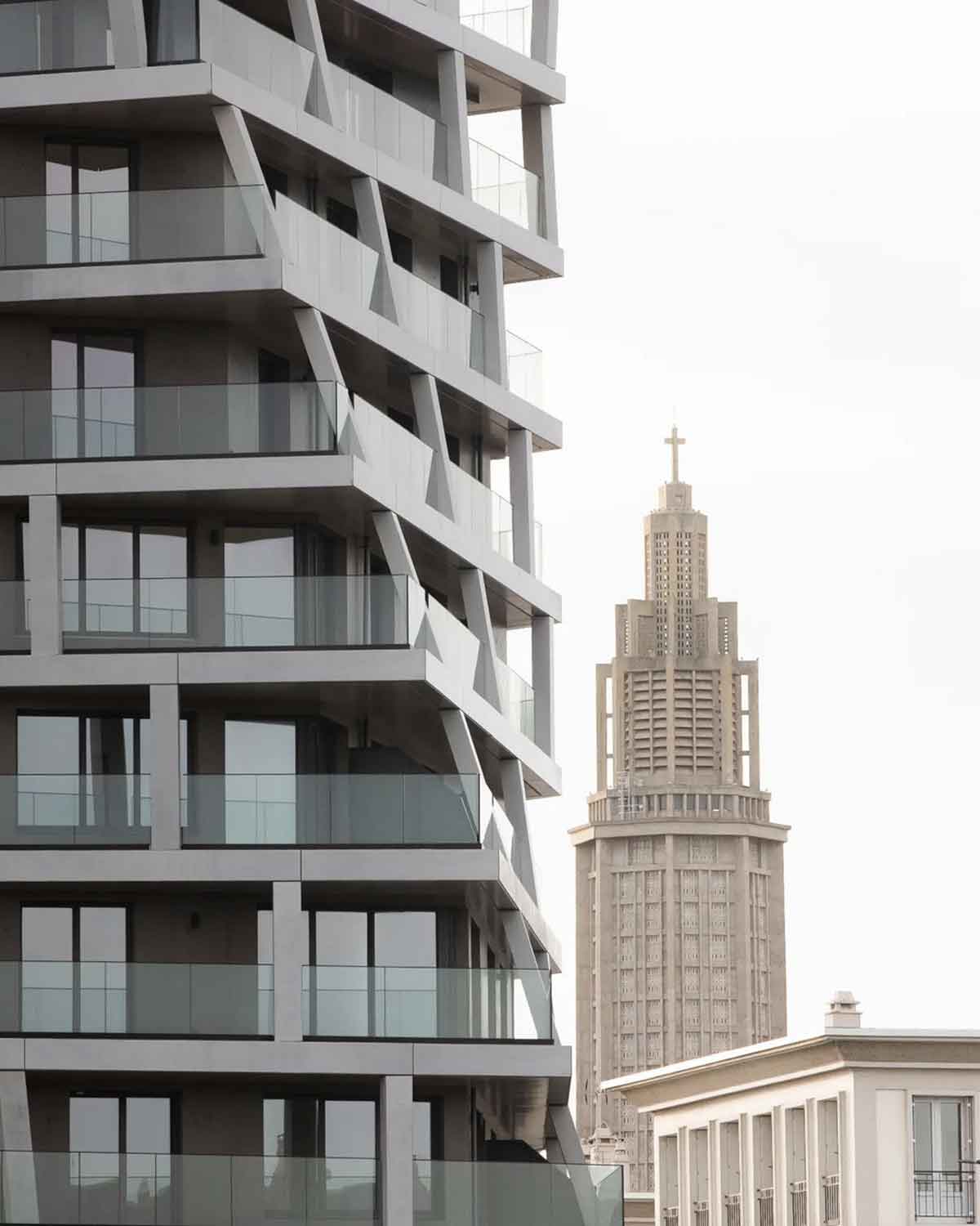The 60m-high Alta stands on a key junction in the ordered, classically proportioned streets – one originally earmarked by Perret for a tower – and within nodding distance of the other celebrated addition to the post-war plan: Oscar Niemeyer’s curvaceous Volcan cultural centre, which was completed in 1982. The challenge for Hamonic + Masson, which won the competition for the project in 2015, was to find an architectural language in keeping with these “two sacred monsters”, as the practice puts it.