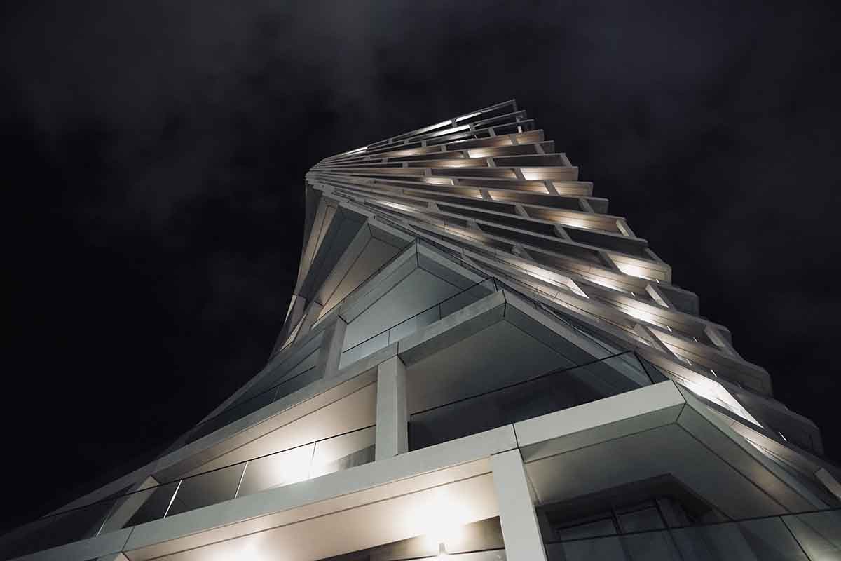 The twisted geometry of Alta is their response. A matrix of inclined precast concrete columns and 400mm-deep balcony edge beams reflects “the grid and order of Perret”, whose buildings were founded on an expressed structure of repeating 6.4m-long units. But as the tower rises, it appears to turn through more than 90 degrees, as if it is looking over its shoulder. This adds a curve to the silhouette that echoes “the form and sensuality of Niemeyer”.