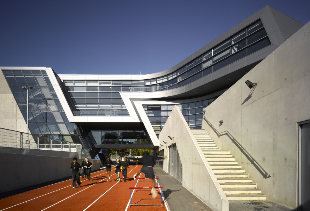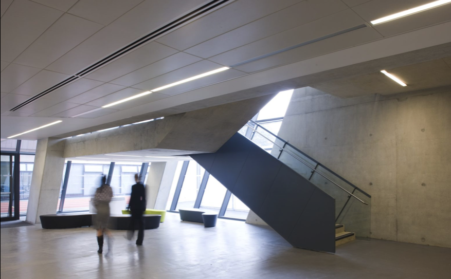 Evelyn Grace Academy won the RIBA Stirling Prize in 2011. Exposed concrete, providing thermal mass, is an integral part of the environmental strategy for the building and provides a robust finish for the school. Other internal walls and partial soffits provide acoustic dampening.