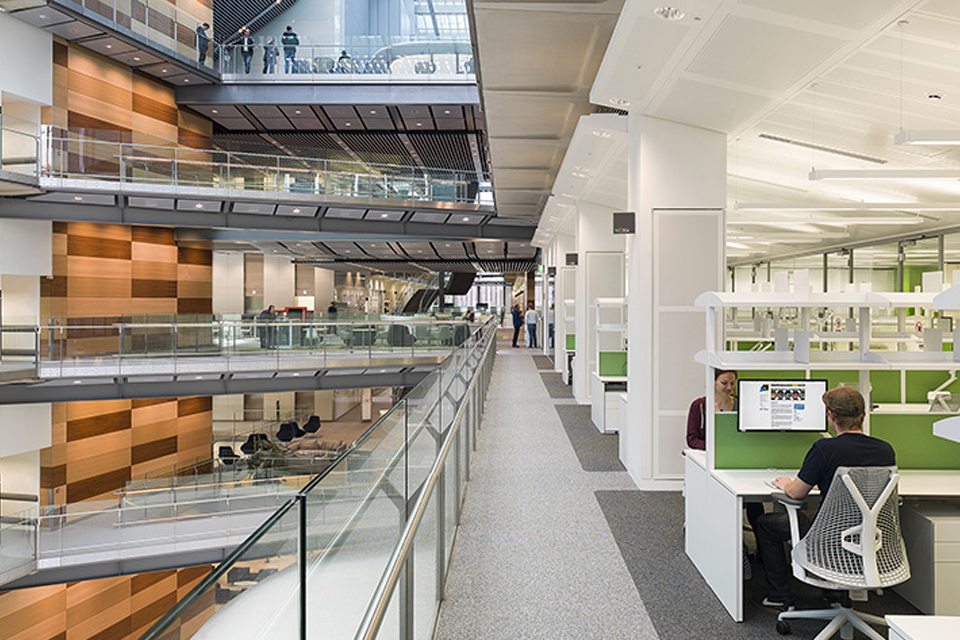 The first thing to appreciate about The Crick is that, although it has seven floors above ground arranged around a 130m-long central street or atrium, it is not at all like an office building. Comprising mainly high-spec laboratory space, it is very highly serviced indeed, requiring a mind-boggling range of liquids and gases to be piped throughout the building, a colossal amount of air-handling equipment, independent power supplies and a host of fail-safe and back-up systems.