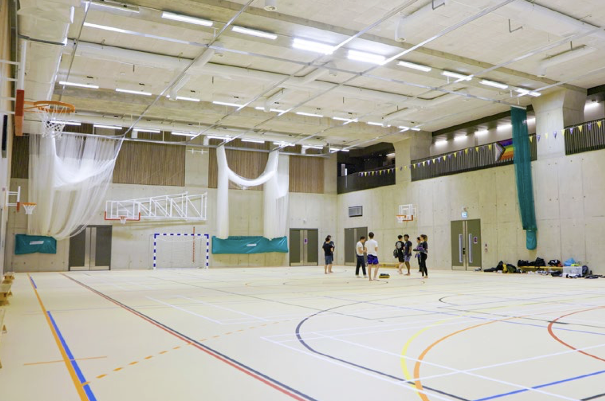 It is undeniably a clever structure, and one that provides aesthetic interest, with the very visible structure inside and angled facades outside. But it is also a logical response to a specific context, says Galinanes Garcia. “We used it to fit very particular internal space requirements into the size and shape of this site. For example, the sports hall could only fit in one place which is quite orthogonal on the page – and rotating the lecture theatre grid allowed us to create some dual aspects. We spent a lot of time experimenting with various spans before we got everything to fit perfectly.”