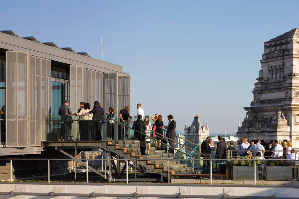 One of the key attractions is the SkyLounge, an imposing structure at the top of this 12-storey building that cantilevers over the lower levels and offers spectacular 360º views over the City of London and the River Thames.