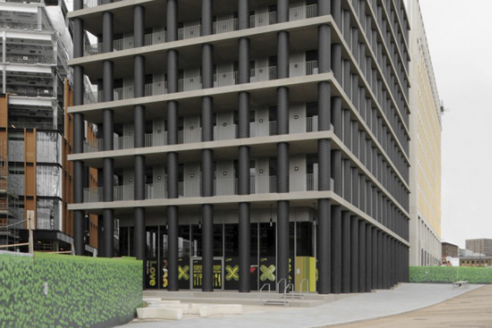 This eight-storey building houses shops, cafes and office space and is formed from an in-situ concrete frame that features materially efficient post-tensioned concrete slabs and precast concrete facades.