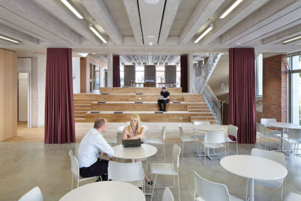Ortus is a learning and events centre housing state-of-the-art teaching and learning facilities, open plan cafe/foyer, exhibition and ancillary spaces. The exposed reinforced concrete frame, wrapping around the central atrium over four-storeys, provides open and flexible teaching spaces.