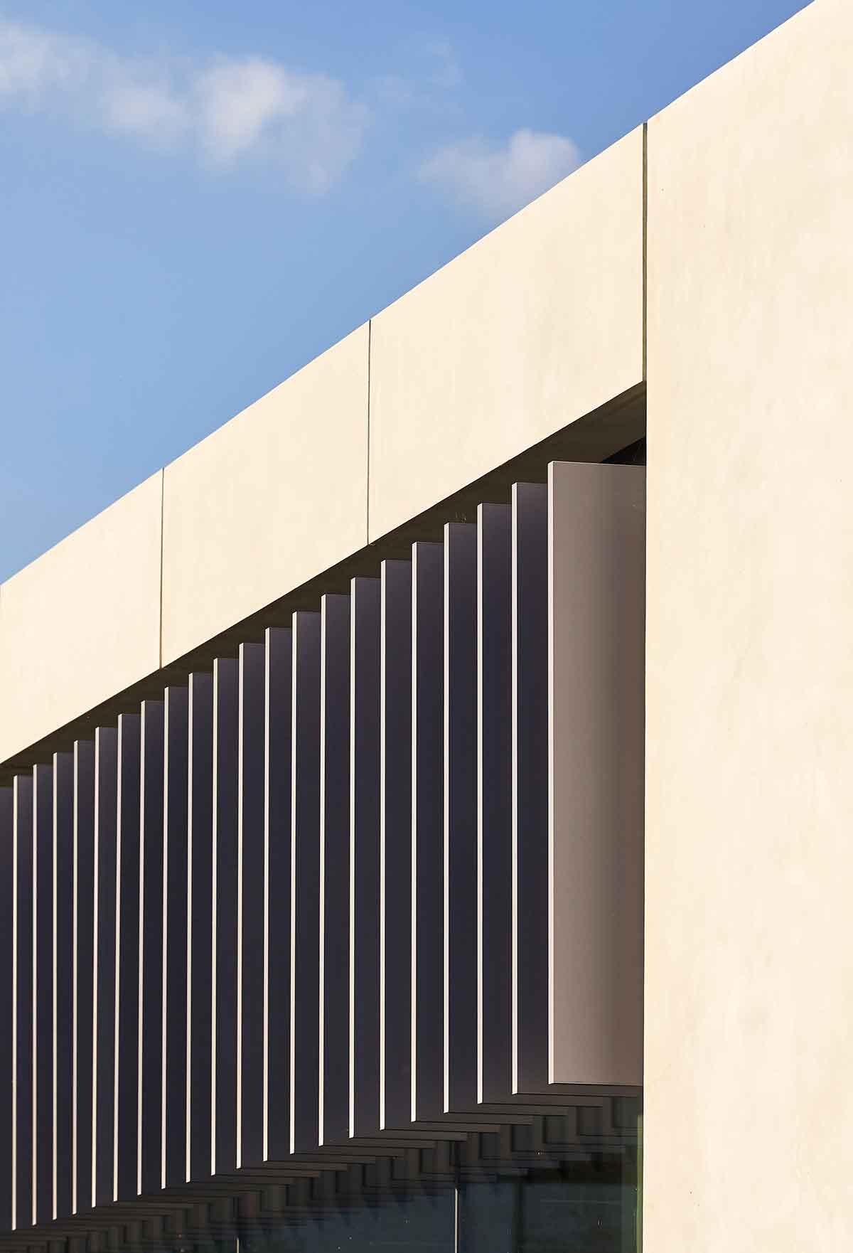 Hobbs’ team had to devise a number of innovations to keep joints and traces of workmanship to a minimum. For the roof slab, the ply-faced aluminium formwork was suspended from above so that the downstand beams, slab and upstands could be cast in a single pour. Similarly, a method was found for terminating the post-tensioning rods on top of the slab, rather than at the end, allowing the slab edges to remain clean. The single-storey blade columns were also cast in one pour. To avoid tie holes, steel shutters were braced from above like an H frame, along with bespoke bracketry and connectors to resist the increased lateral pressure.