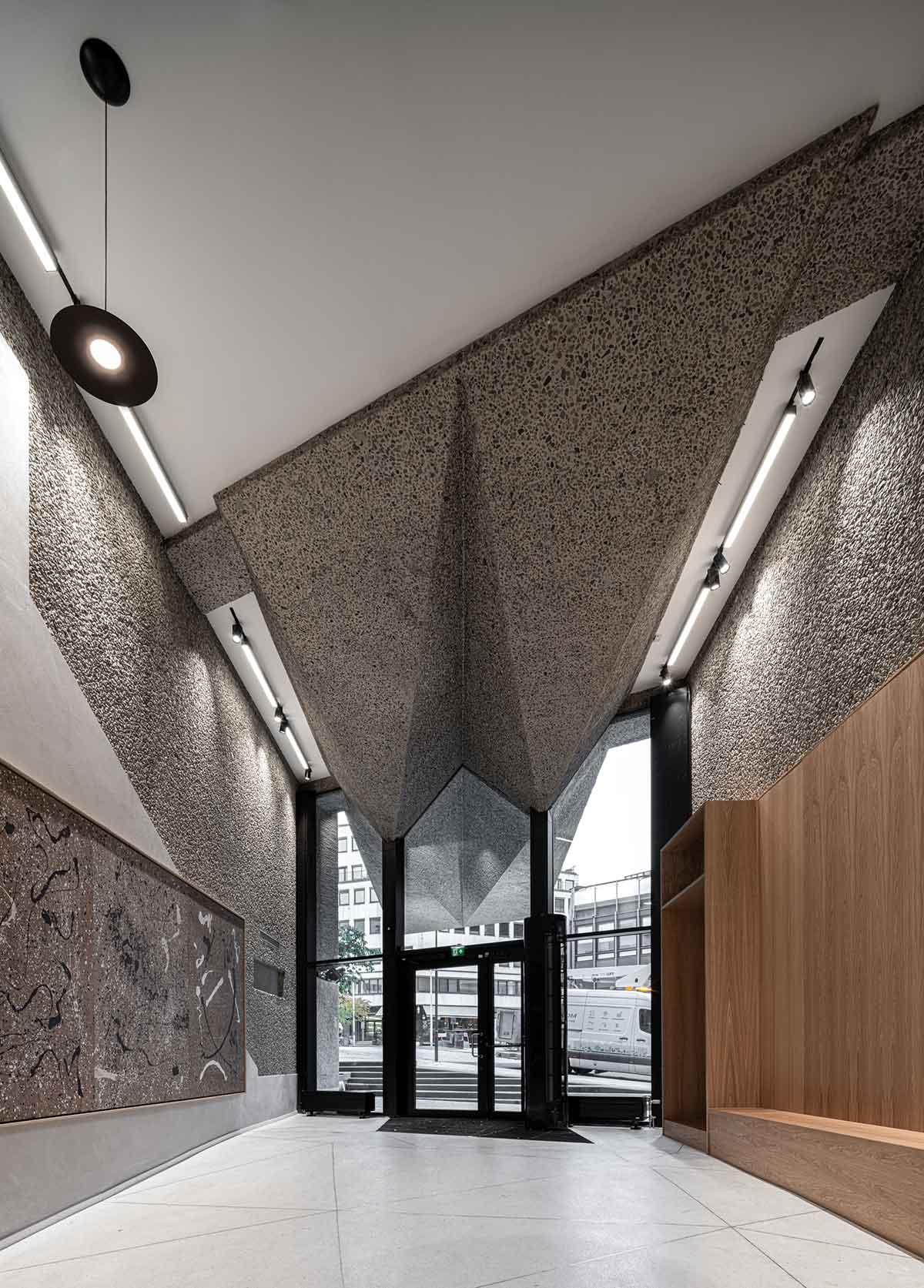 Mad arkitekter has completed the refurbishment and retrofit of Oslo’s 1960s Health Council building – one of the finest examples of Erling Viksjø’s naturbetong (“natural concrete”) architecture. Known as the Trekantblokka, or triangle block, the building has been modernised to accommodate new speculative office space, as well as public-facing functions at street level and a plant floor at the top of the building. But at the heart of the project has been the restoration of the rugged concrete loadbearing facades, and the reinstatement of Viksjø’s raw interiors.